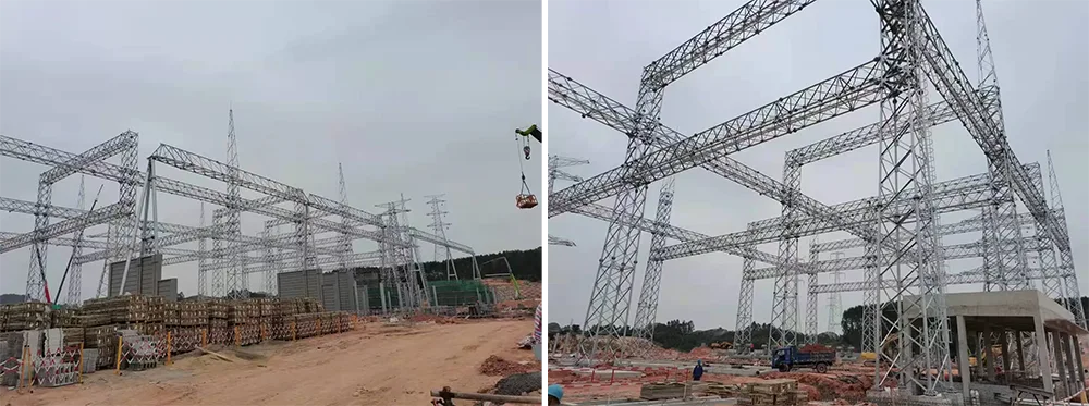 Тие се сосема различни од кулите за пренос на електрична енергија, кои се користат само за поддршка на надземни далноводи. Кулите за пренос на енергија служат само како потпори за пренос на високонапонска електрична енергија од точка А до точка Б, без трансформација на напон или контрола на моќноста. Спротивно на тоа, челичните конструкции на трафостаницата се комплетни објекти кои интегрираат функции за трансформација на напон, контрола на моќноста и дистрибуција на енергија, опремени со основни компоненти како што се главни трансформатори, преклопна опрема и заштитни уреди. Тие се незаменливи преработувачки и диспечерски центри во процесот на пренос на електрична енергија. Двајцата работат заедно за да формираат целосна мрежа за пренос на енергија.