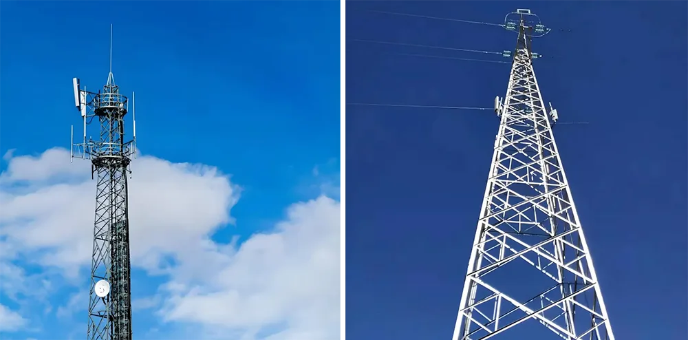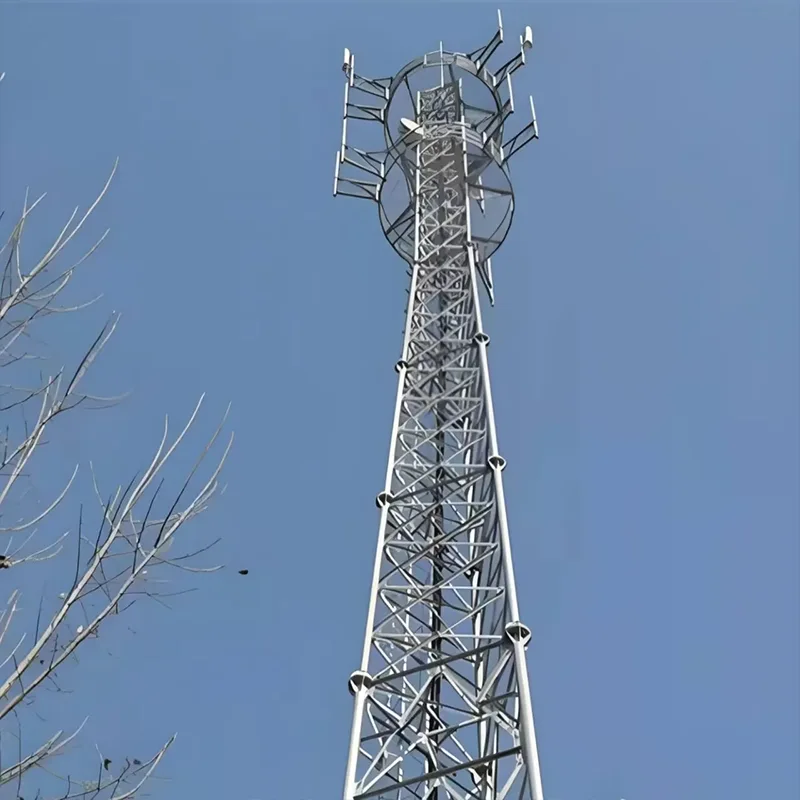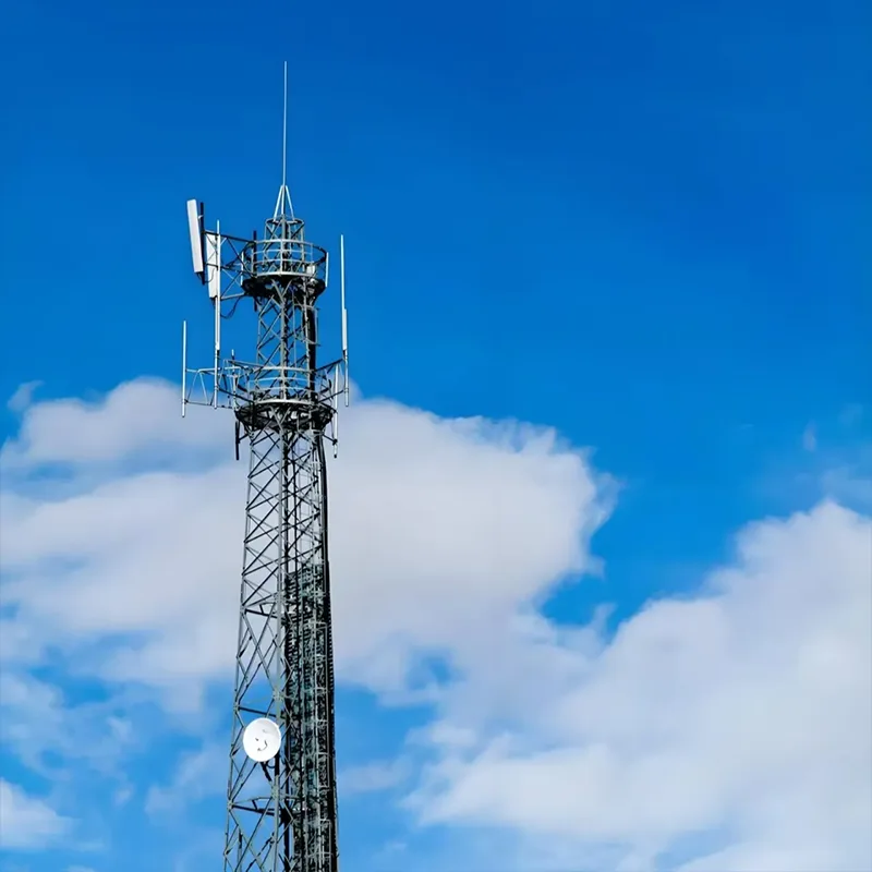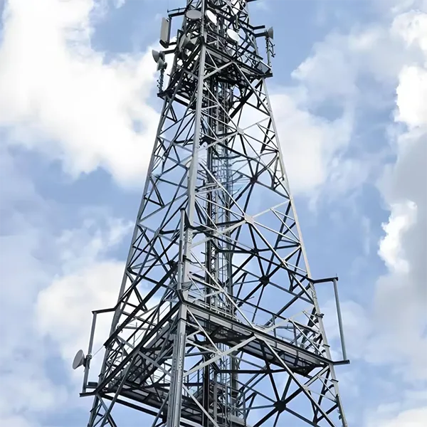 Аголни челични кули: Одликувајќи се со рамномерно распоредена решеткаста структура на бандаж, овие кули нудат силна носивост. Тие можат да поддржуваат повеќе групи антени и опрема за пренос на микробранови истовремено, што ги прави особено погодни за отворени области како што се предградијата и планинските региони каде што се потребни комуникациски оптоварувања со голем капацитет.