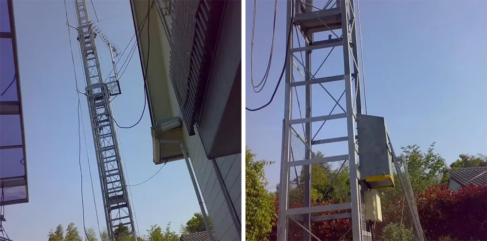 Вертикална скала од челична конструкција со безбедносен кафез |